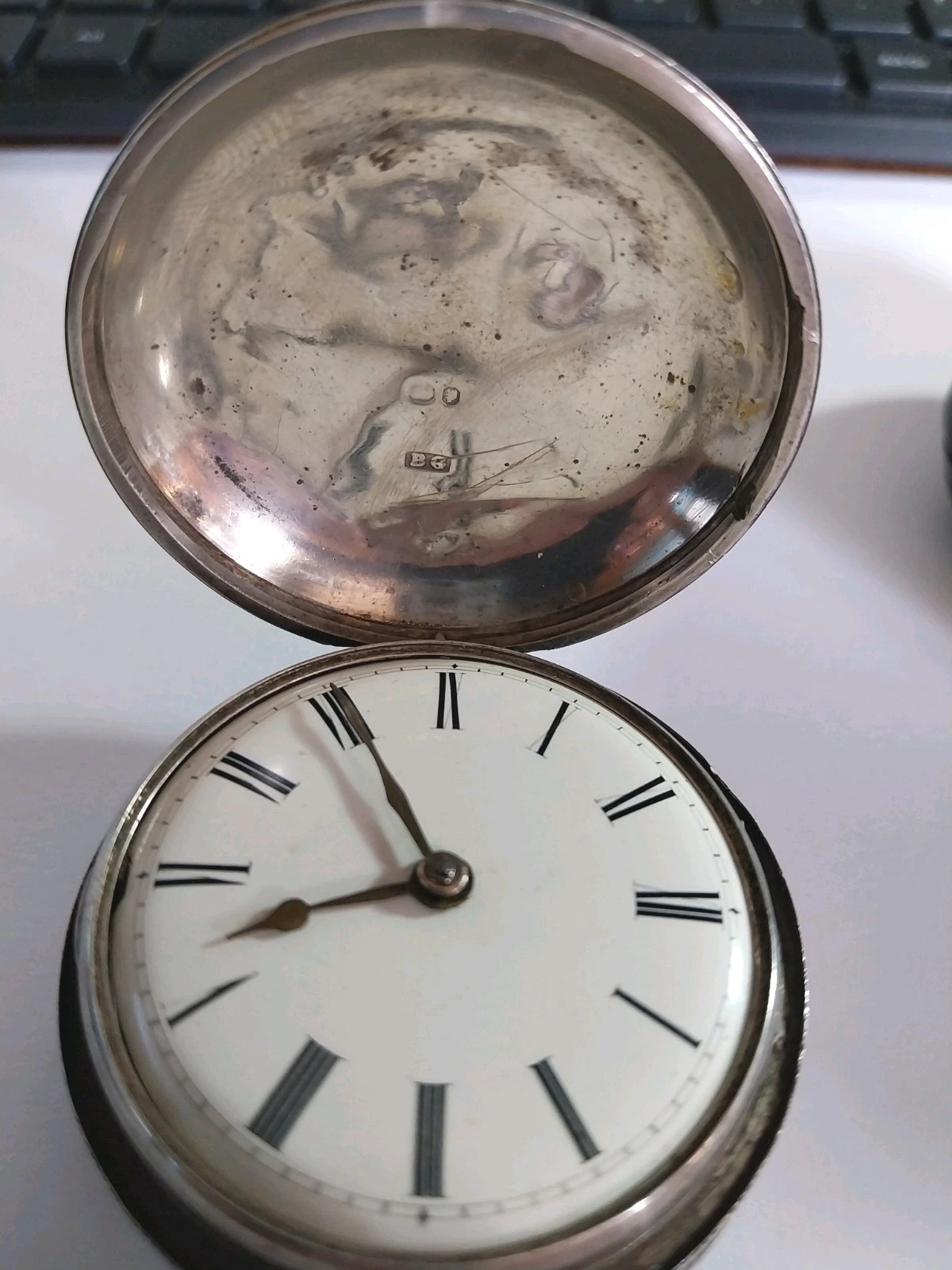 s-l1600 (3) Published March 21, 2026 at 1200 × 1600 in James Gregory – A Period Pocketwatch No crystal, alas, but the watch is otherwise intact.